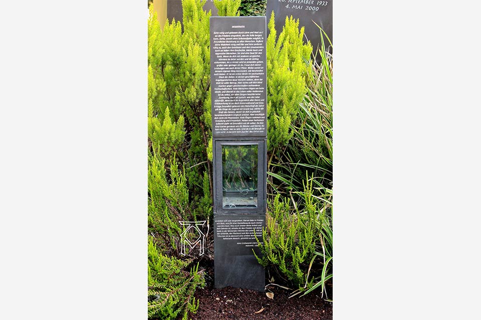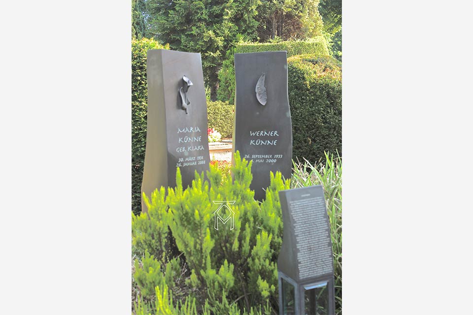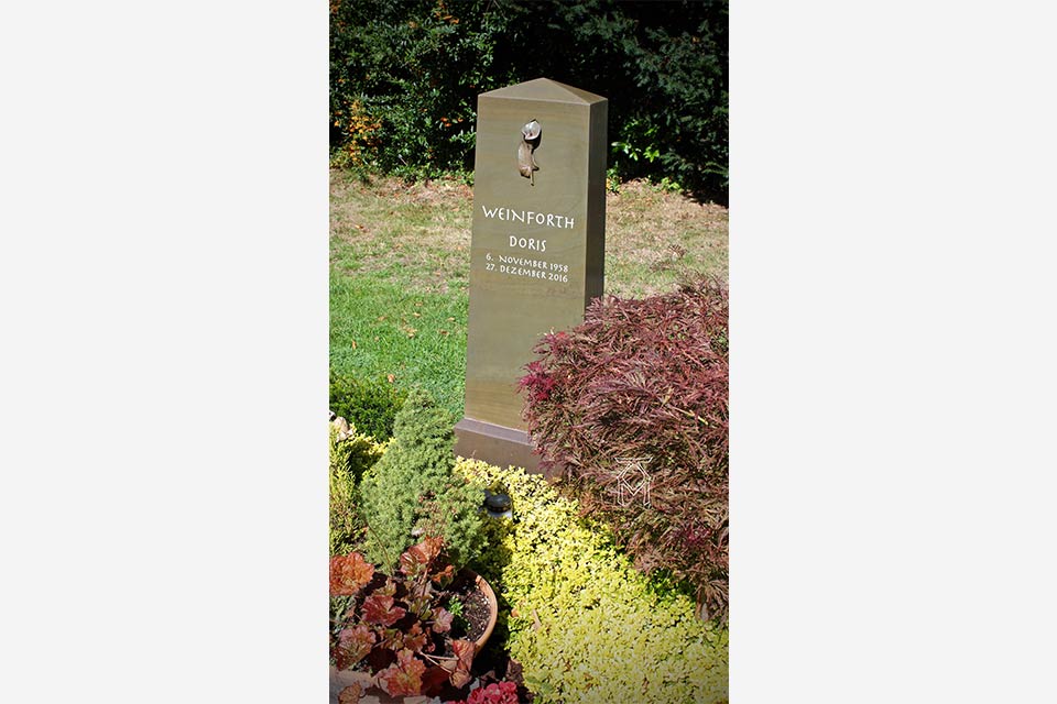 Grabschmuck: Laternen, Vasen, Schalen aus Aluminium, Bronze, Edelstahl und Naturstein sowie Trittplatten
